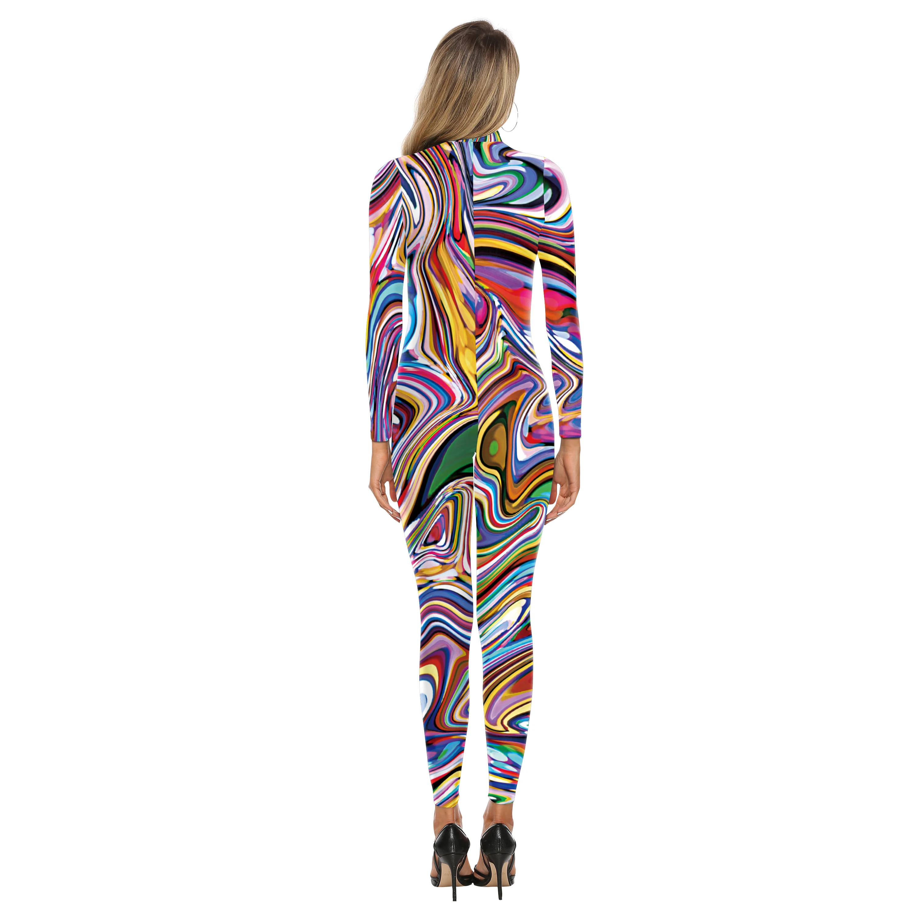 Classic Tie Dyeye Sexy Bodysuits Colorful Printing Long Sleeve Outfit Women Clothing Elastic Slim Female Jumpsuits