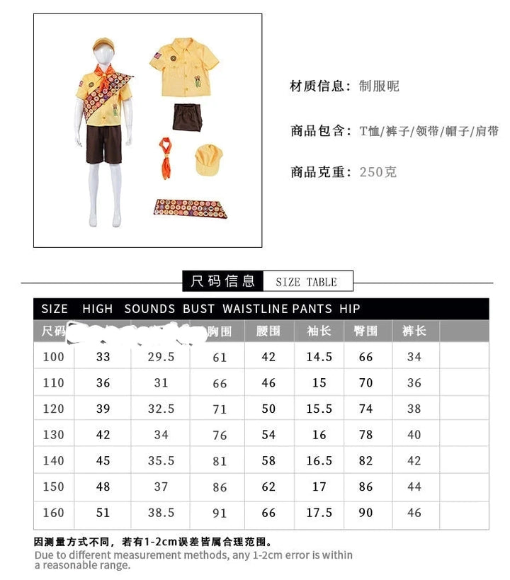 Anime Film oh Up a Wilderness Cosplay Explorer Russells Costume Children Adults Family Uniform Hats Accessory Role-play Party Suit