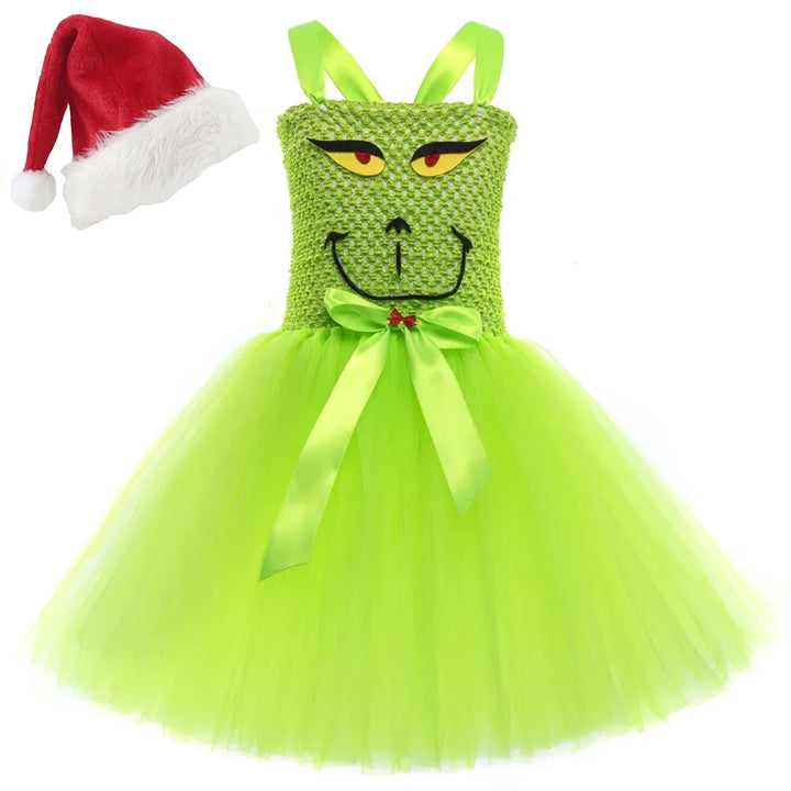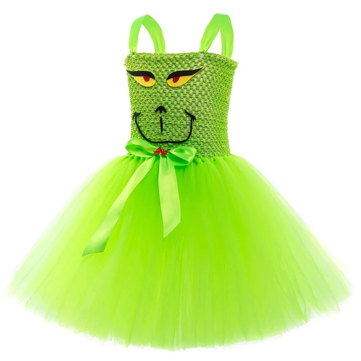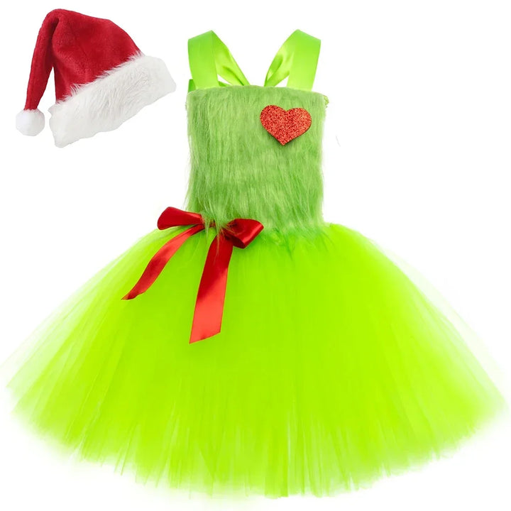 Kids Santa Claus GrinchCostume Girls Christmas Tutu Dress Green Fur Monster Costumes for Girls Halloween Carnival Party Dresses