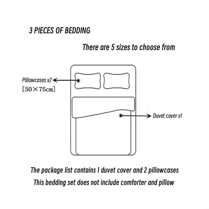 2. 3pcs/set (1x Duvet cover, 2x pillowcase-50*75cm)