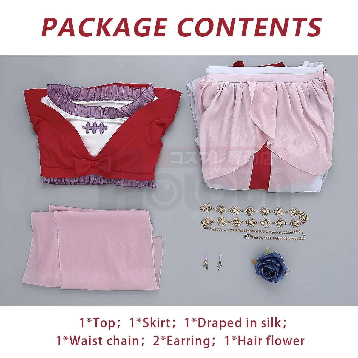 [Package Contents]: 1*Top; 1*Skirt; 1*Strap;1*Waist chain; 1*Pair of Earrings; 1*Hair flower