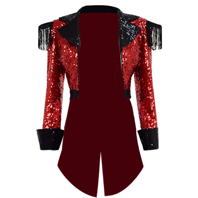 Women Sequing Steampunknk Jacket Red Circus Ringmasterer Show Costume