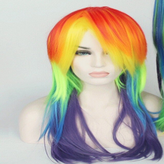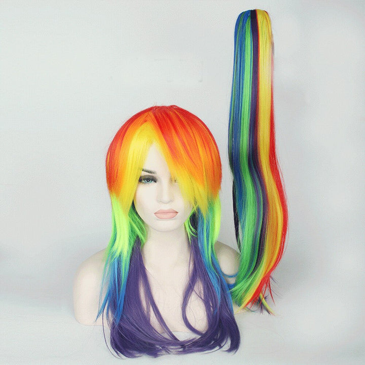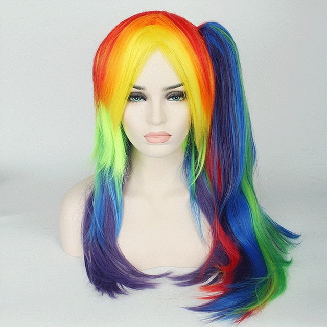 65cm My Little Pony Rainbow Straight Cosplay Wig Synthetic Multi color Women Fake Hair Wigs With Long Ponytail For Christmas