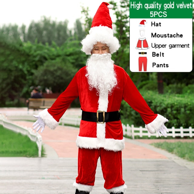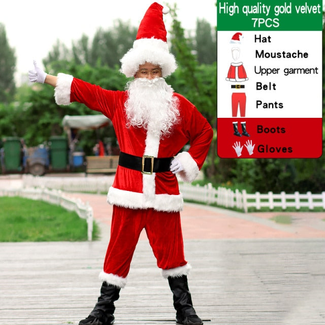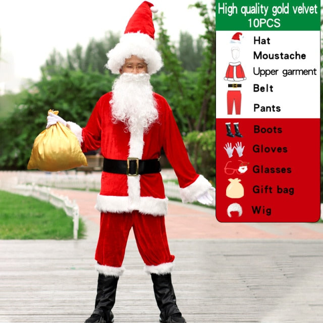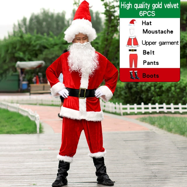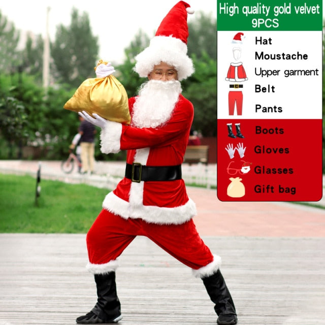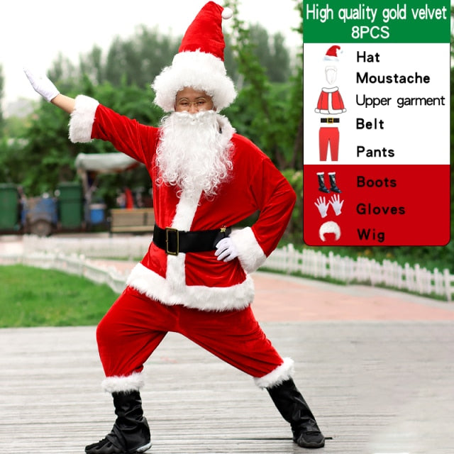 8pcs/lot Christmas Santa Claus Costume Cosplay Santa Claus Clothes Fancy Dress In Christmas Men Costume Suit For Adults