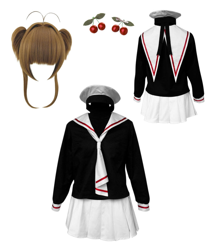 Adult Anime Cardcaptoror Sakuras Cosplay Black Uniform Brown Wig Women's Suit Halloween Costumes