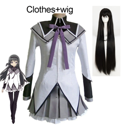Akemimi Homurara Cosplay Costume Puellala Magigi Madokaka Magicaca Skirts and Wigs Woman's Stockings Hairpin Accessories