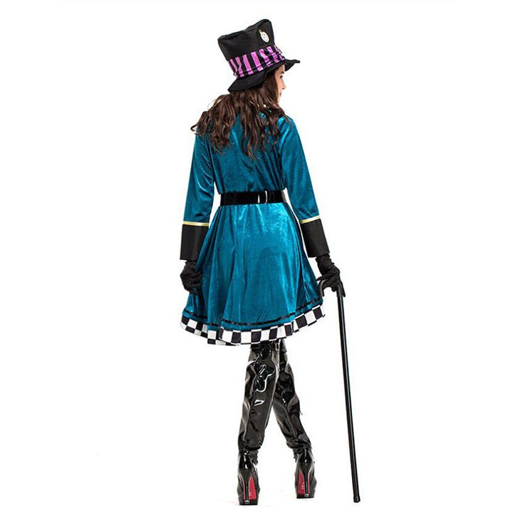 Aliceing Wonderlands Clown Mad Hatter Costume for Adults Women Fantasias Sexy Magician Cosplay Halloween Carnival Magic Dress