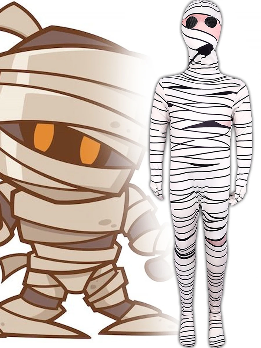 Ancient Costume Egypt Cosplay Mummy Full Body Suit Kids Parents Party Halloween Carnivals Dress Up Clothes