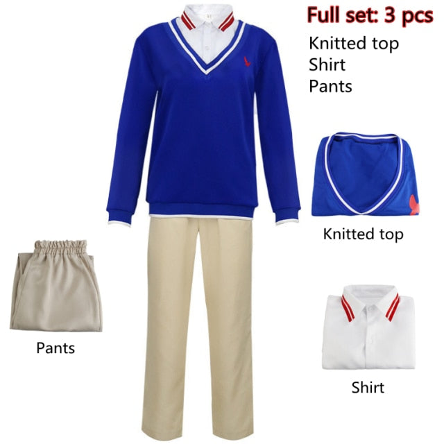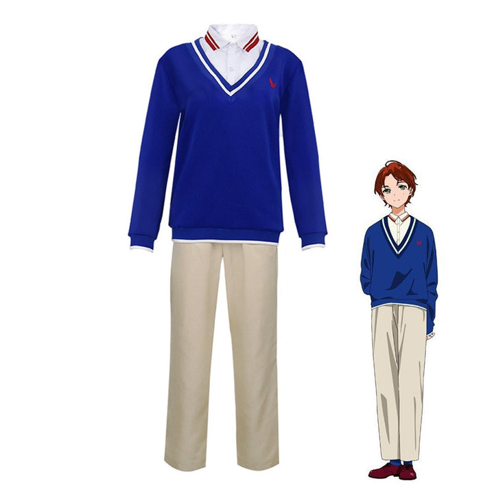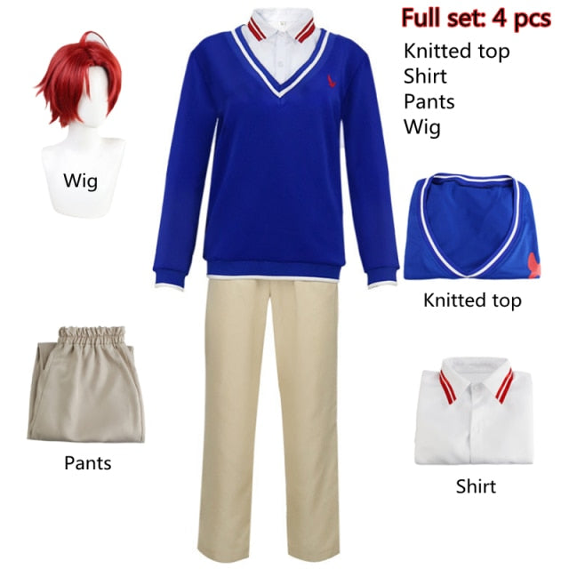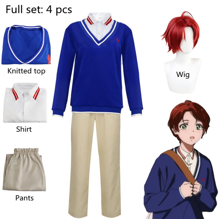 Anime Cosplay Costume WONDER my EGG a PRIORITY Sawakiki Momoeoe Uniform Suit Campus Style Blue Knitted Top Wig