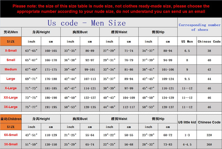 ★Warm tip: the numbers listed are equal to the body size, not the clothing size.