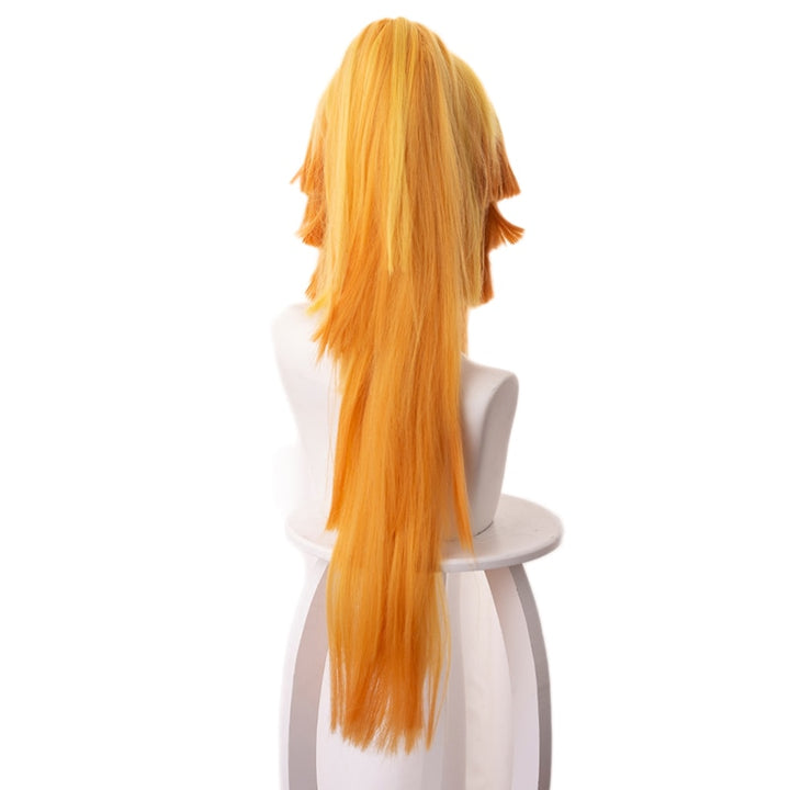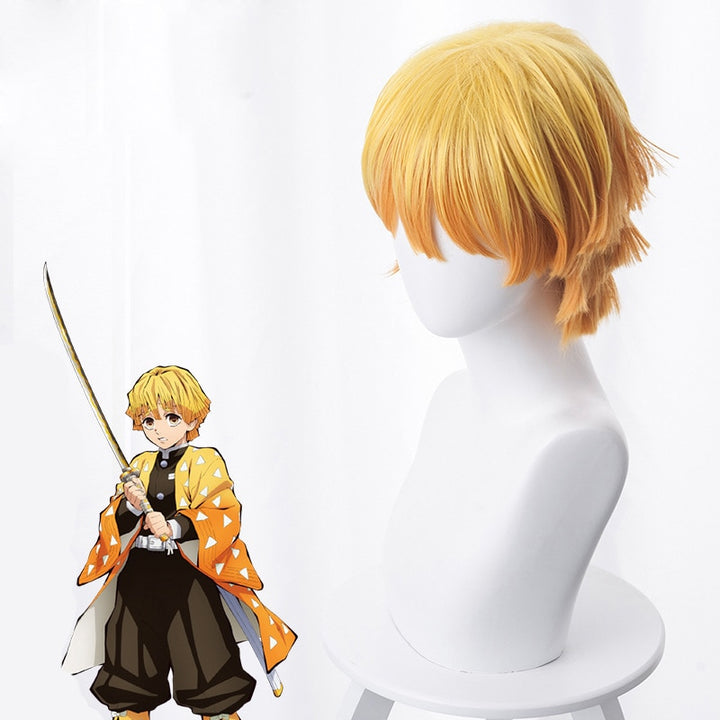 Anime Demons cos Slayerer Kimetsusu Yaibaba Agatsumama Zenitsusu Wig Cosplay Costume Long Ponytail Heat Resistant Synthetic Hair Wigs