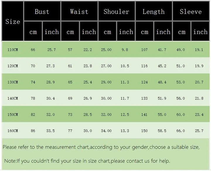 As all of our costume is hand-sewn, the finished costume may vary by approximately one (1-2) inch in either direction of the specified measurements.