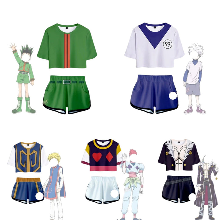 Anime X-Hunterer Cosplay Crops Top HXHs Killuaua Zoldyckck cos Jerseysys Kurapikaka Hisokaka Gons cos Freecsscss Shorts Top Buiks T-shirt pajamas