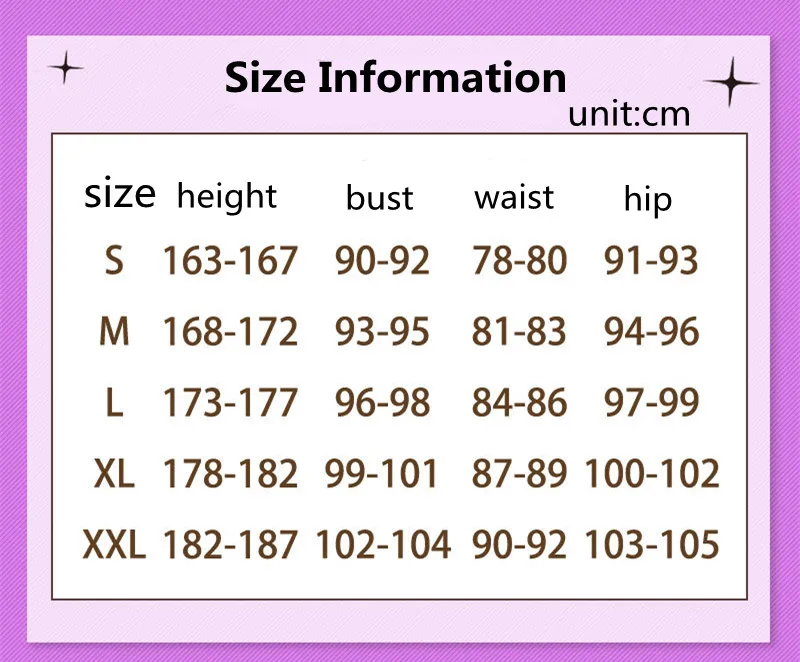 3.Due to the particularity of cosplay costume, please check the size table before purchasing. If you can't confirm your size, you can contact our staff. Our staff will recommend the appropriate size for you.