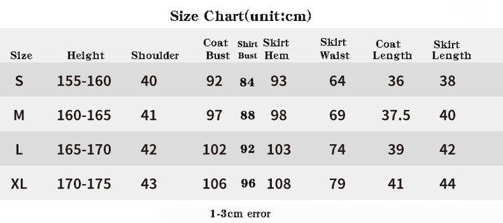 package includes:Top+Skirts+Coat+Belt+Waistbag+Stockings(as the picture shown)
