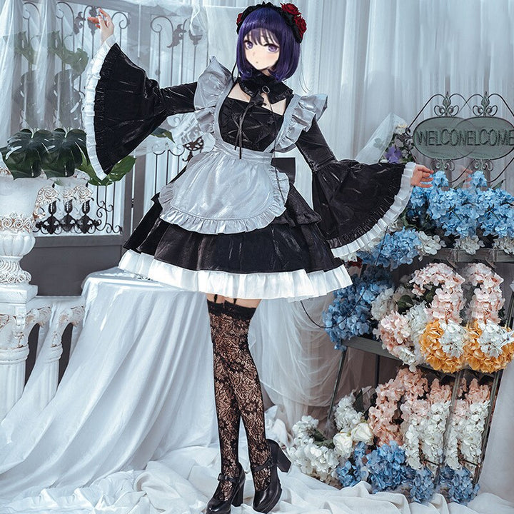 Anime Marinin Kitagawawa Maid Cosplay Kuroeoe Shizukuku Costume Lovely Lolita Black Maid Dress Halloween Carnival Uniform Suit NEW