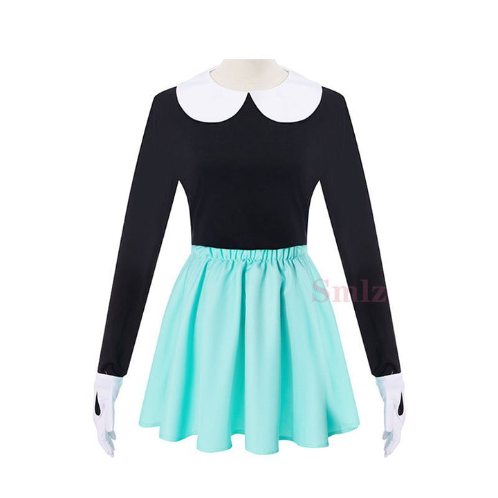 Anime The Cupheadad Show Ms Chalicece Cosplay Costume kid girl Cos Outfits Suits Black Top Green Skirt Christmas child Halloween