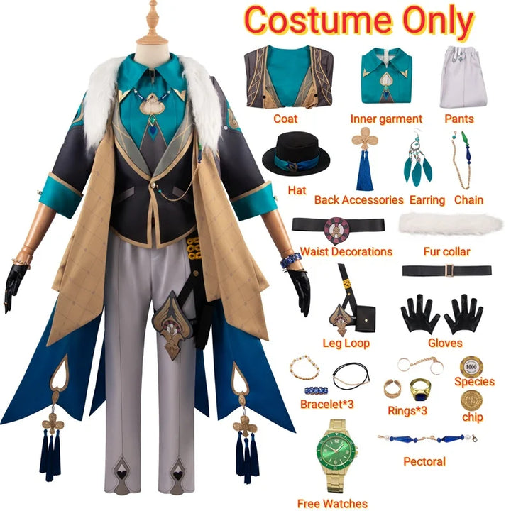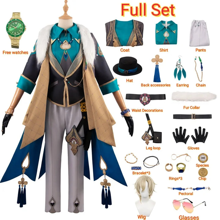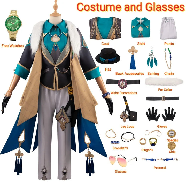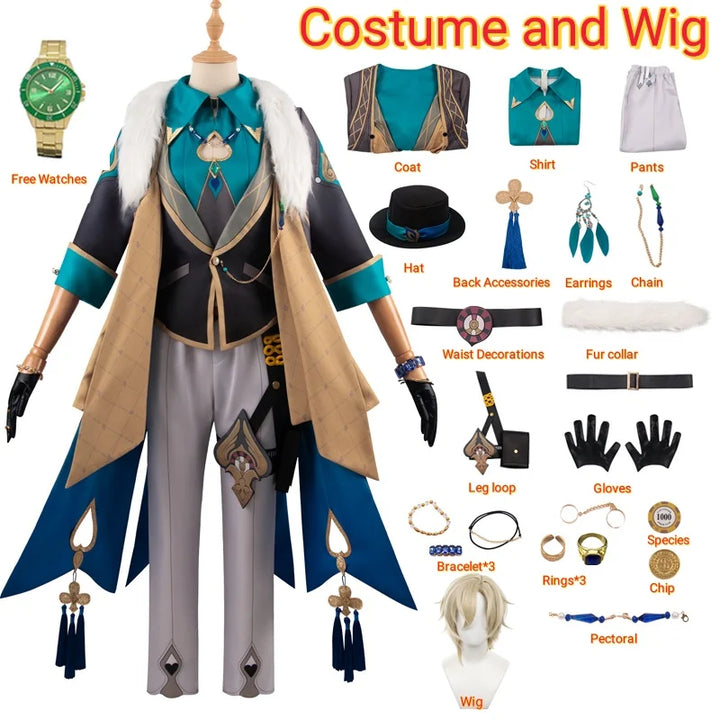 Aventurine Cosplay Costume Game Honkai Star Rail Suit Watch Wig Free Watches Anime Halloween Costumes Men Game Character Outfits