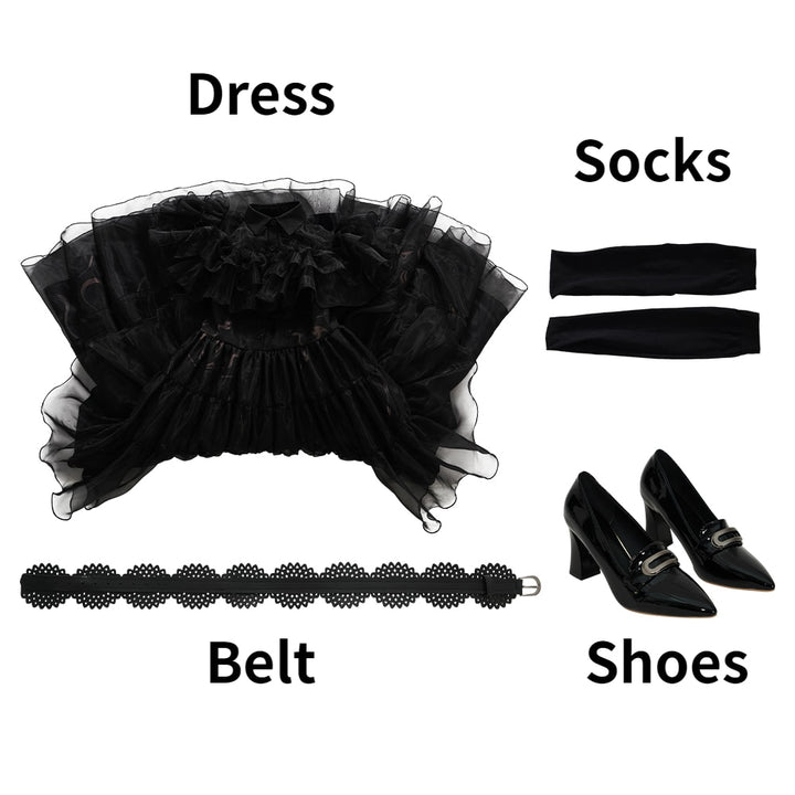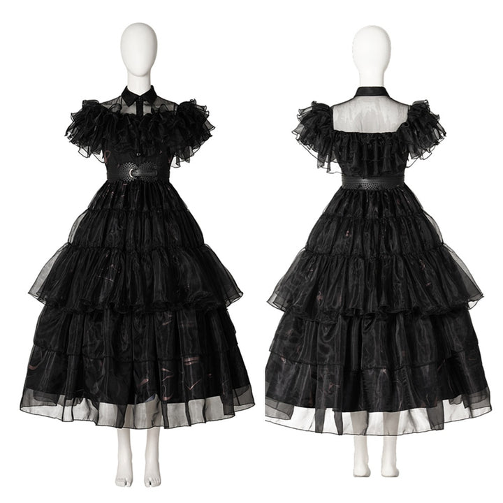 Black Woman Wednesday Dress Cosplay Costume One Piece Halloween Christmas Party Ball Dress Wednesday Black Addamsms Fancy Dress