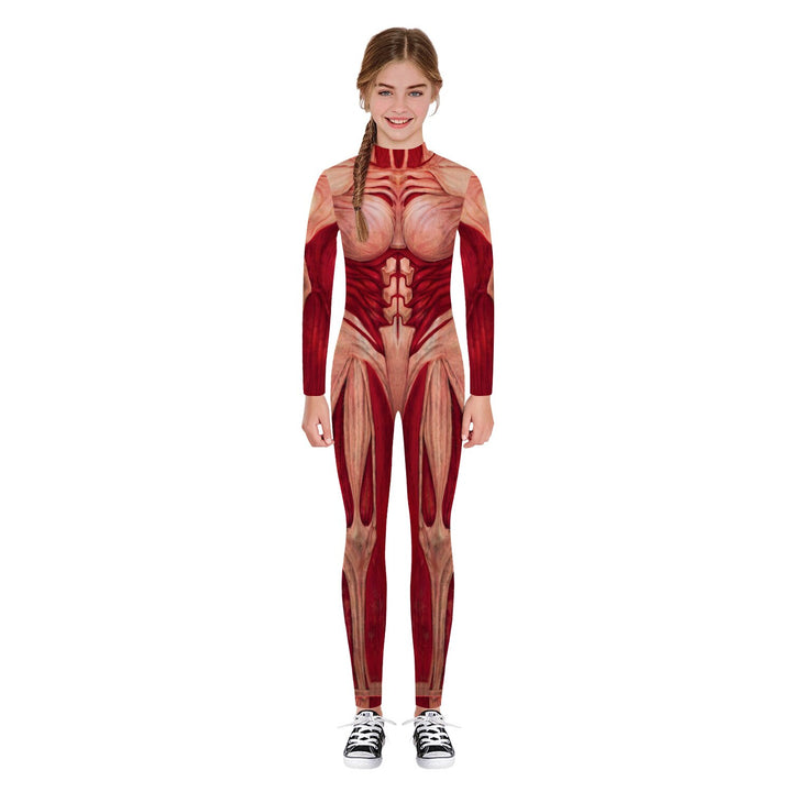 Boys Girls Cosplay Costumes Attack On Titanan Jumpsuits Zentai Anime Printed Bodysuits Art Body Muscles Suit for Kids Children