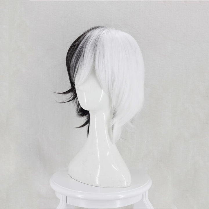 Bungogo and Strayay Dogs Kyuusakuku Yumenono Half Black and White Short Heat Resistance Synthetic Hair Anime Costume Cosplay Wigs+ Wig Cap