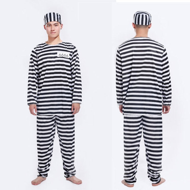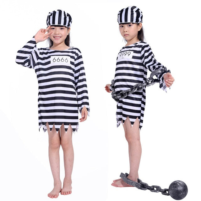 Carnival Party Halloween Prisoner Costume for Men Women Kids Child Family Violent oh Prisoner Costumes Fancy Dresses Set