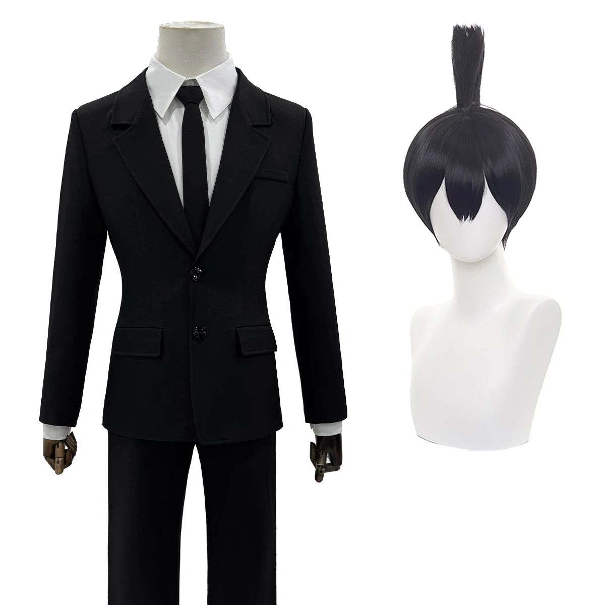 Chainsawaw Anime Denjnj Akiki Cosplay Costume Wig Halloween Christmas Convention Black Suit Shirt Pant Tie Daily