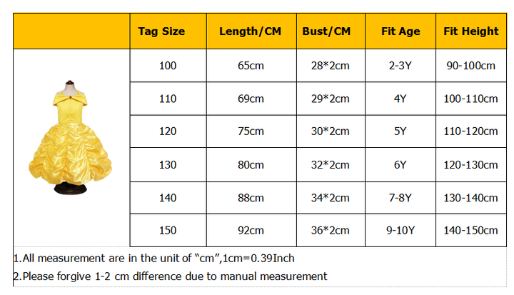 As all of our costume is hand-sewn, the finished costume may vary by approximately one (1-2) inch in either direction of the specified measurements.