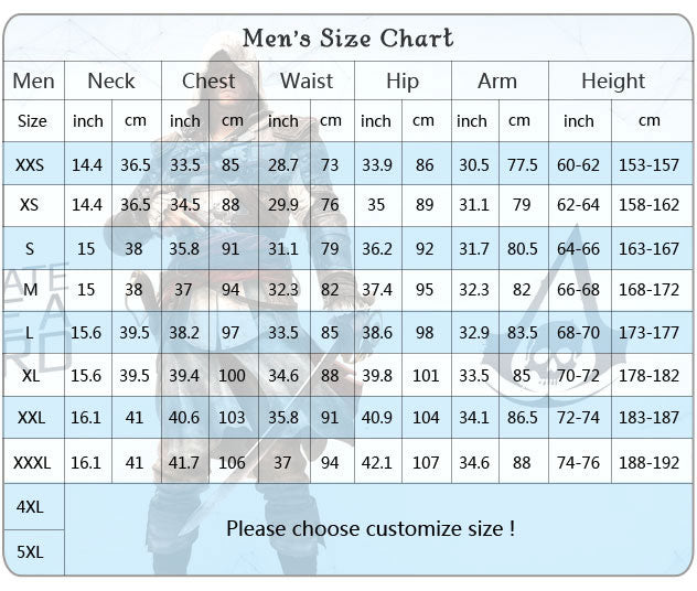 As all of our costume is hand-sewn, the finished costume may vary by approximately one (1-2) inch in either direction of the specified measurements.