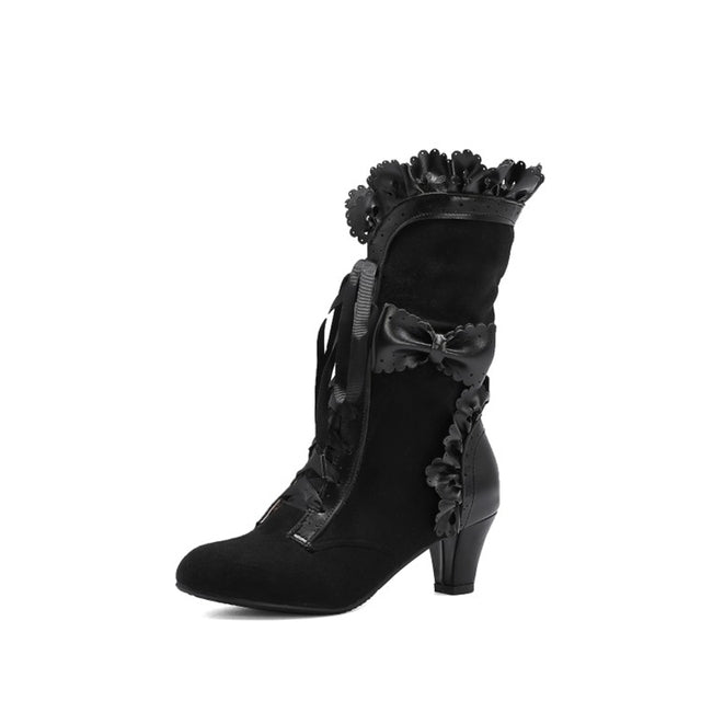 Elegant Fashion Big Size 33-43 Winter Style Thick High Heels Lace Up Ankle Boots Platform Women Boots Fall Winter Shoes 188-3