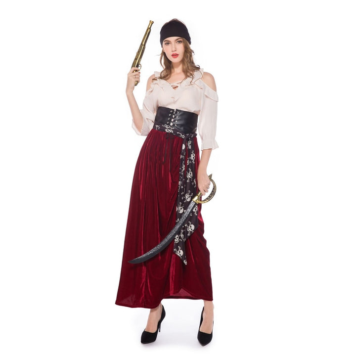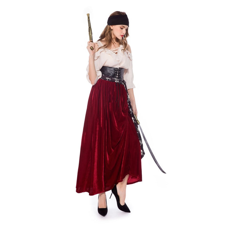 Female CaribbeanPirates Captain Costume Halloween Cosplay Suit Medoeval Gothic Fancy Woman Dress