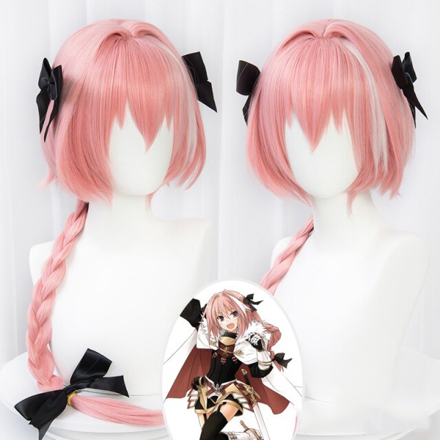 FGOs Fatete Grandnd Order Astolfofo Saberer Cosplay Anime wigs and shoes Boots Long Pink Hair Bows Astolfoo wigs+wig cap Halloween Props