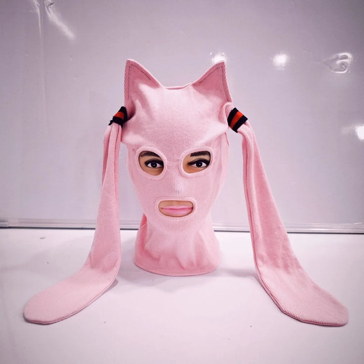 Funny Anime Cat Ear Knitted Face Mask Cosplay Cute Knitted Hats Halloween Party Costumes Accessory Funny Full Face Helmet