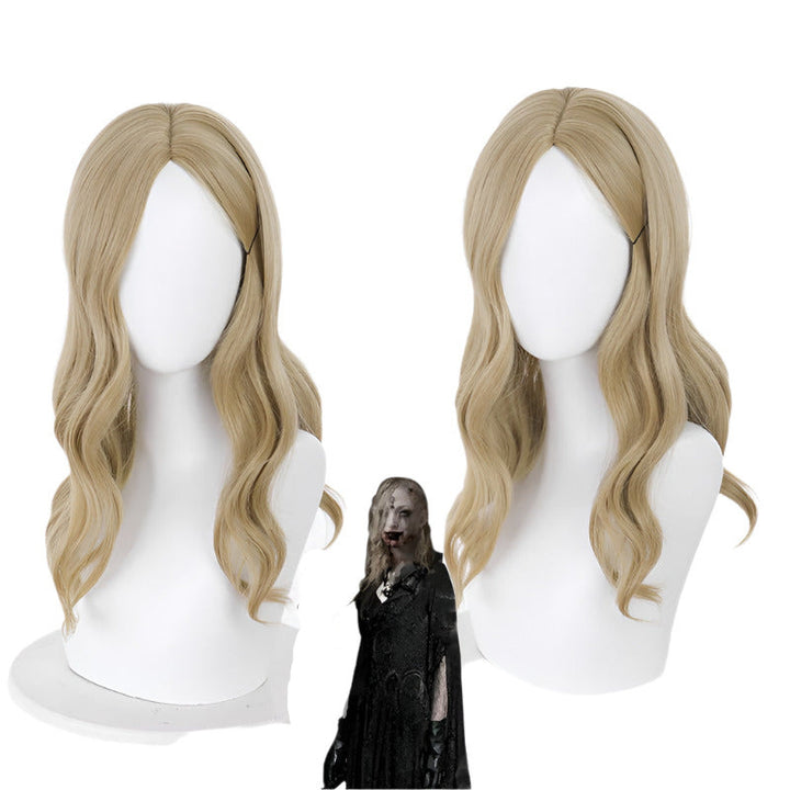 Game Evils a Village Belala and Vampire Lady Dimitrescucu Wig 45CM Brown Yellow Medium Length Curly Hair Halloween Cosplay Wigs