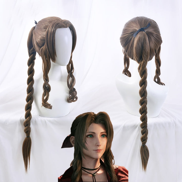 Game FFVIIAerith Cosplay Wig Women Braided Brown Hair FinalFantasyVII Cosplay Wig Aerith Gainsborough Wigs + Free Wig Cap