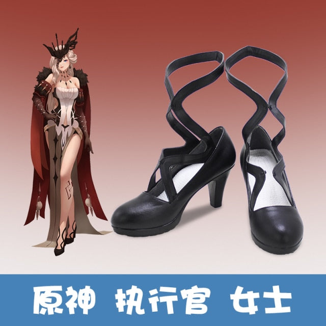 Genshing and Impacts Fatuiui Executives a Officers NPCs Cosplay shoes Game Yellow wigs Halloween La Signorara Neck props earring Accessories