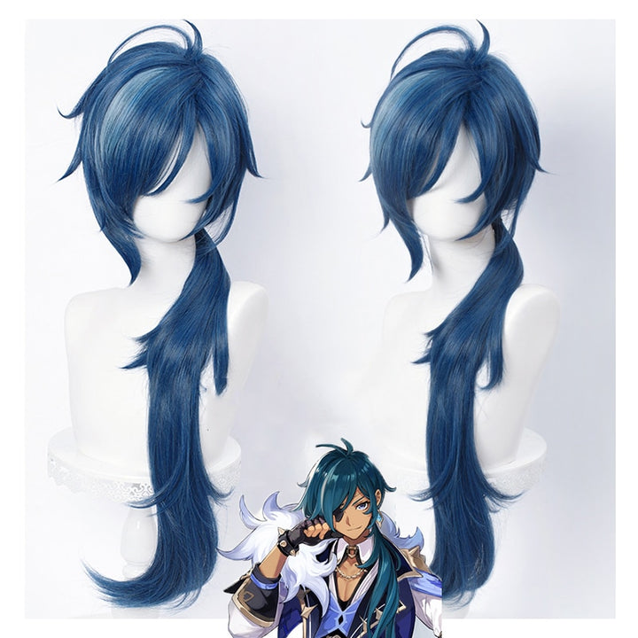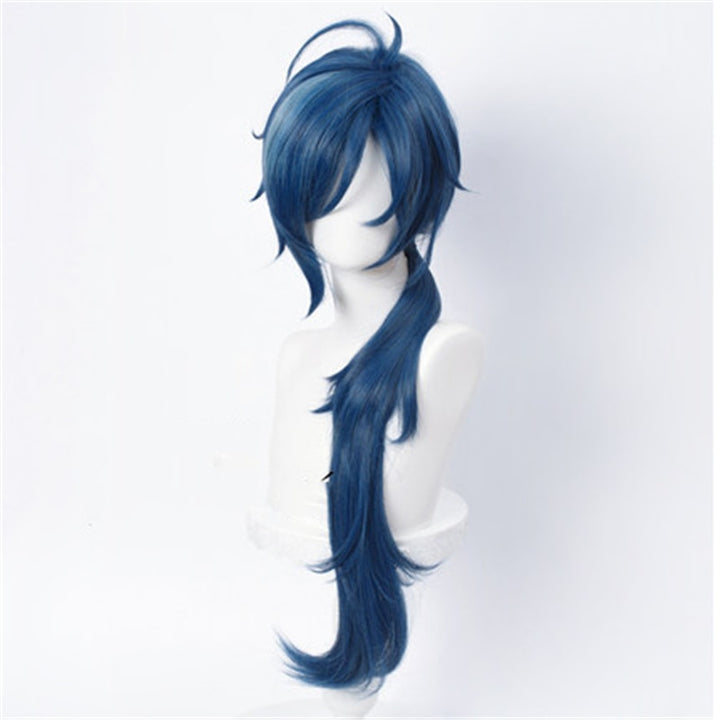 Genshing and Impacts Kaeyaya Cosplay Men 80cm Long Ink-blue Wig Cosplay Heat Resistant Synthetic Hair Peluca Anime Wigs