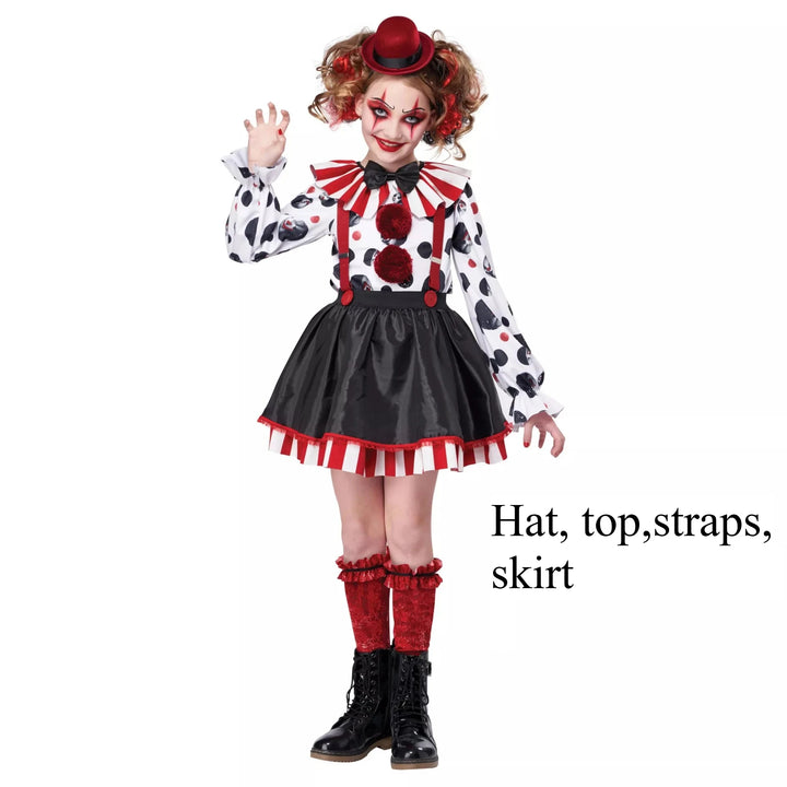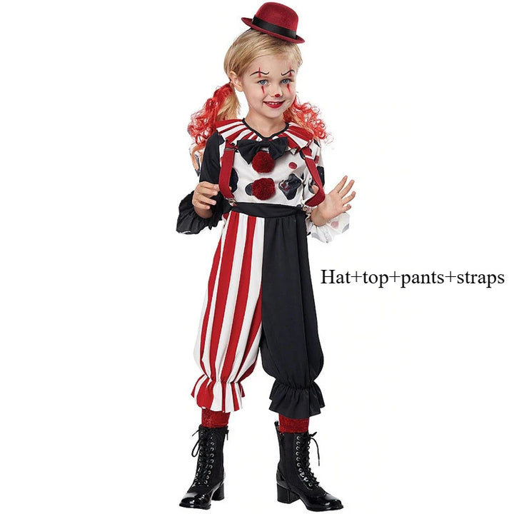 Girls Harlequinin Clown Costume Kids Jesterer Fancy Dress Cosplay Halloween Costume Purim Monster FunnyUgly Circus Party Fancy Dress