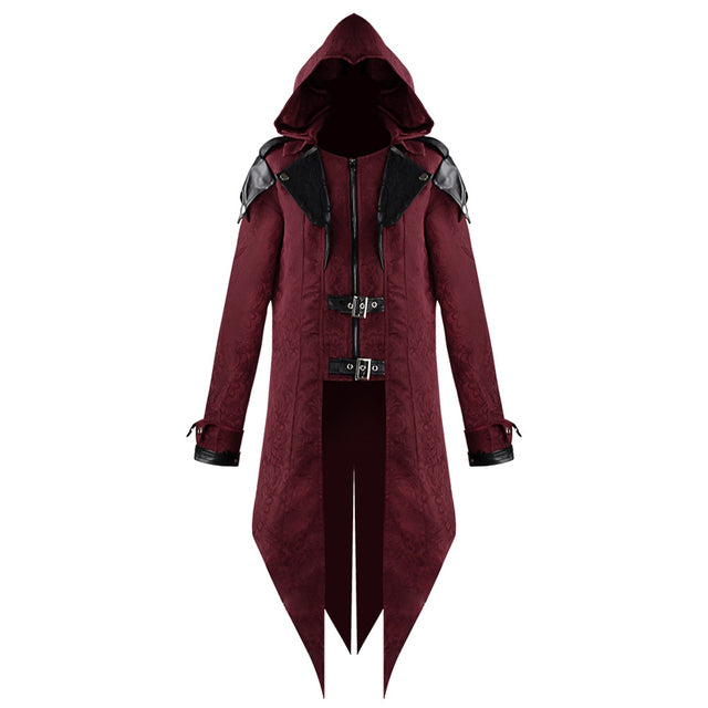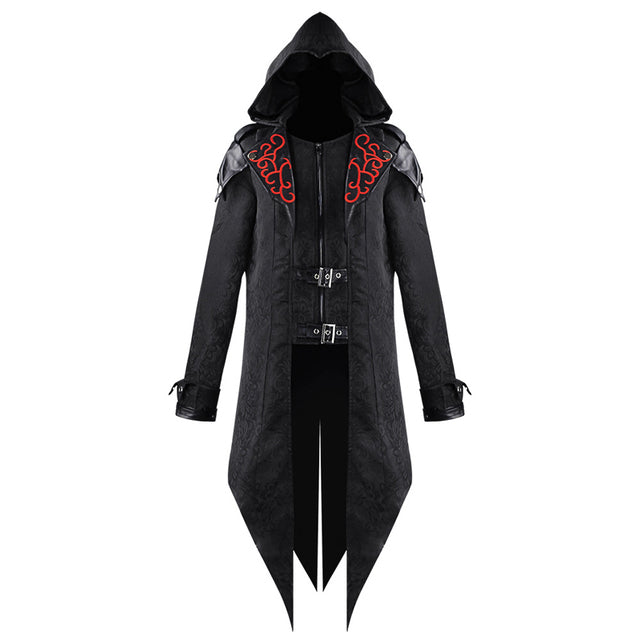 Halloween Cosplay Man Medieval Costume Mens Victorian Black Retro Patchwork Jacket Steampunk Trench Coat Tailcoat Gothic Uniform