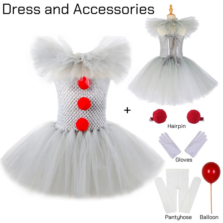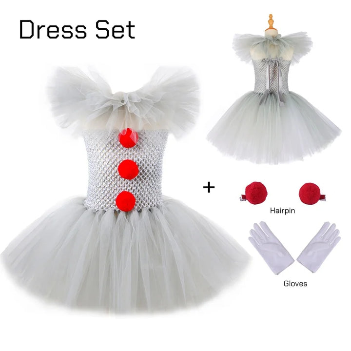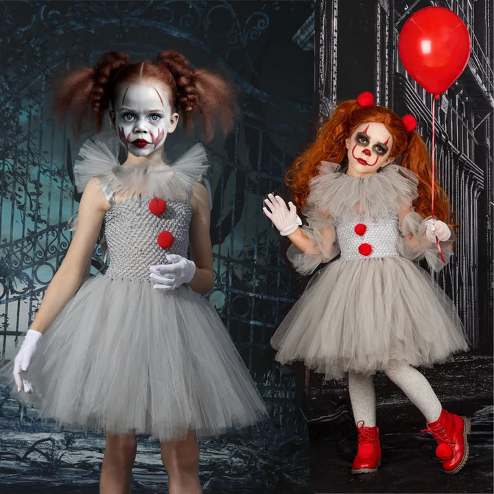 Halloween Kids Horror Movie Clowns Cosplay Costume Set for Girls Carnival Party Party Dress Up Clothing