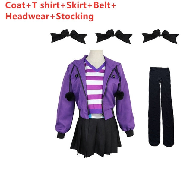 Package include1:Coat+T shirt+Skirt+Belt+Headwear+Stocking