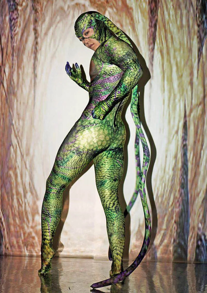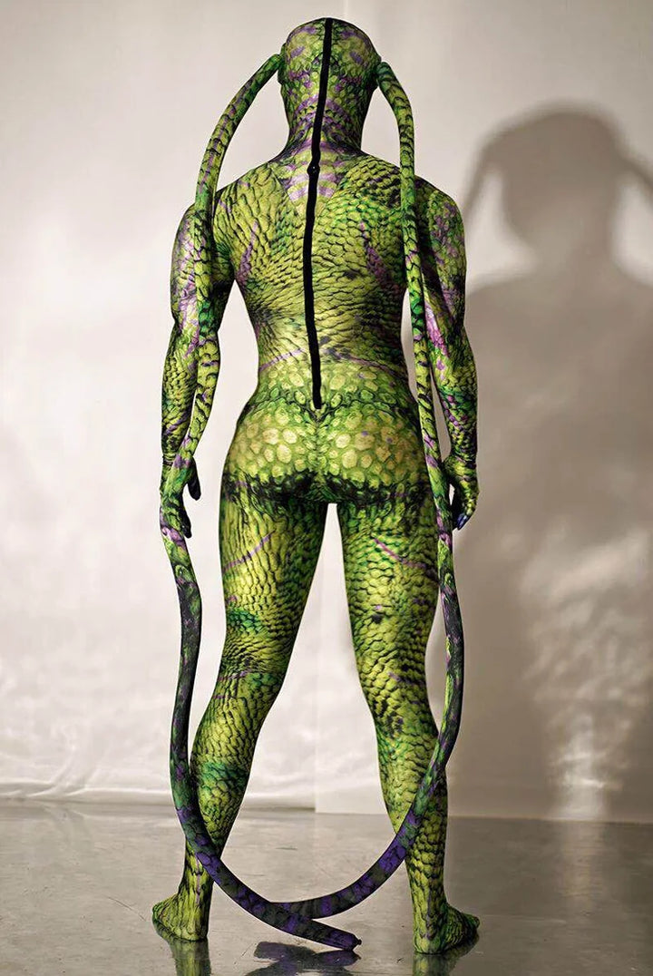 Halloween Rave Party Role-playing Stage Clothes Green bodysuit snake Spandex Stretch Skinny Jumpsuit Men Women Cosplay Costume