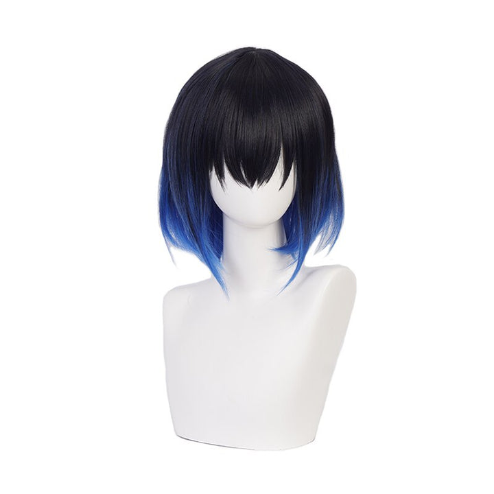 Hashibirara Inosukeke Short Blue Ombrere Wig Demon cos Slayerer Kimetsusu Yaibaba Heat Resistant Hair Cosplay Costume Wigs + Free Wig Cap
