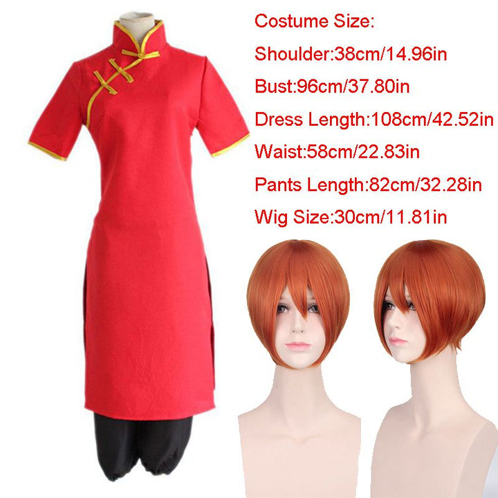 Kagurara Cosplay Costume Cheongsam Anime Gintamama Fashionable Cos Uniform Dress+Pants Good a Workmanship and Stitcheses Sets With Wig