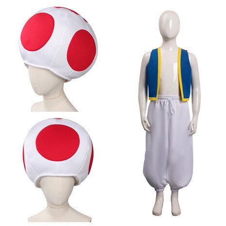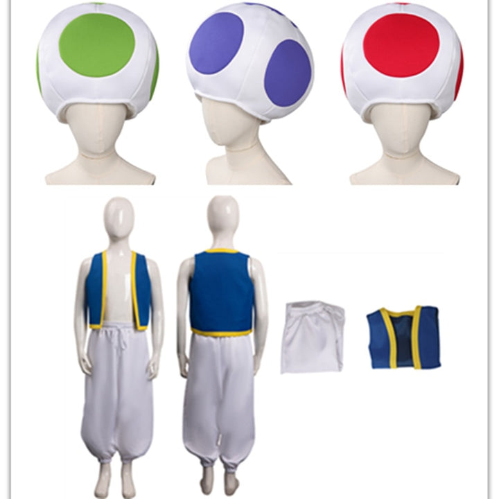 Kinopioio Cosplay Hat Kids Boys Toadad Costume Brosos 2 Mushroomom Cap Vest Pants Halloween Carnival Party Outfits