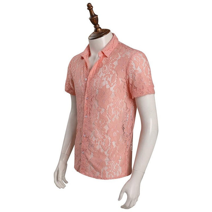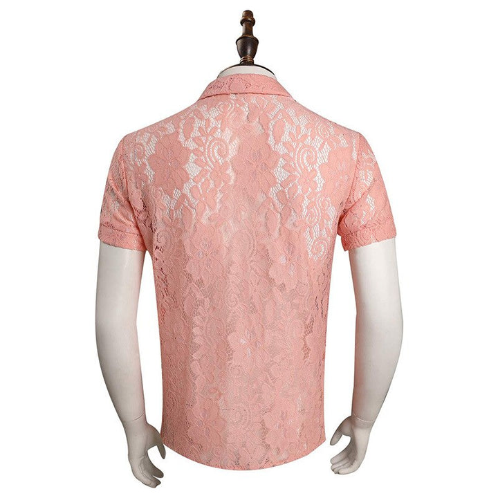 Movie Elvisis Presleyey Costume Pink Short Sleeve Lace Shirt Outfits Men Fashion Idol Top Halloween Carnival Anime Cosplay Clothing