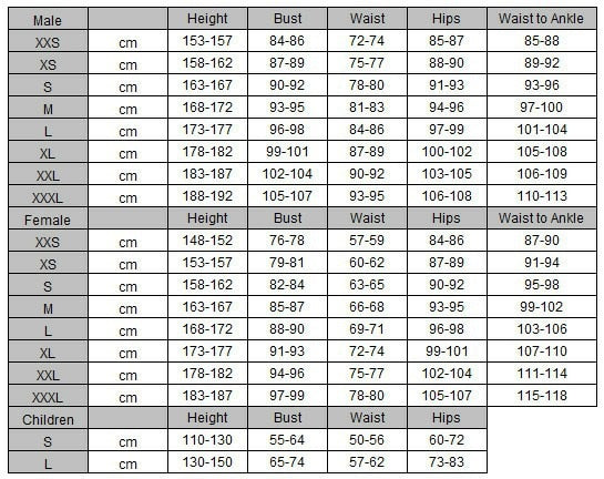 As all of our costume is hand-sewn, the finished costume may vary by approximately one (1-2) inch in either direction of the specified measurements.