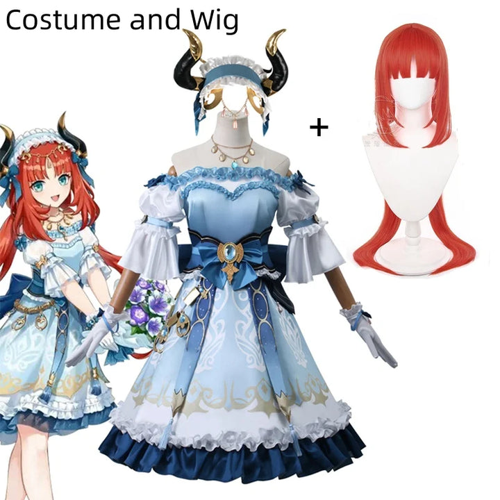 Nilouou Cosplay Costume Genshinin Wig Impacts Red Hair Women Dancer Dress Carnival Uniform Anime Halloween Costumes