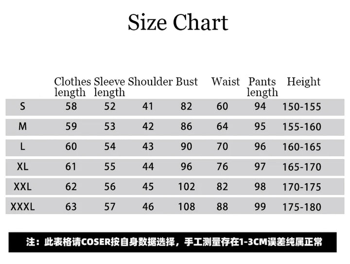 As all of our costume is hand-sewn, the finished costume may vary by approximately one (1-2) inch in either direction of the specified measurements.