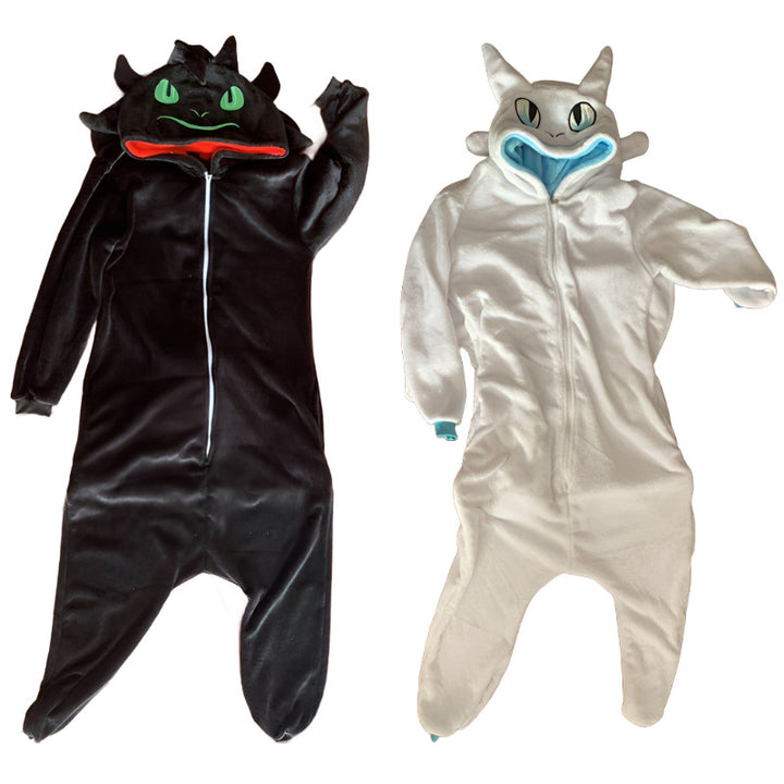 Unisex Toothlessless Black White Dragon Onesie Adult Flannel Pajama Anime Cosplay Costume Train In One Night Fury Sleepwear